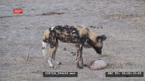 Solo Wild Dog vs Hyenas feeding on a Kill GENERAL BEHAVIOUR