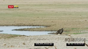 Bateleur bird drinking from waterhole