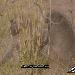 Chacma baboons sitting down and grooming GENERAL BEHAVIOUR