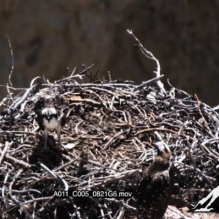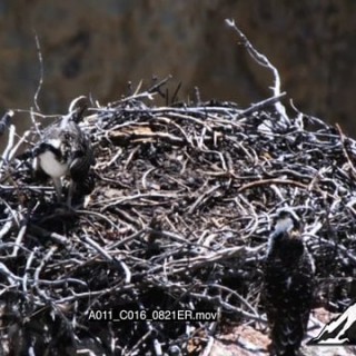 Juvenile Ospreys standing in a nest moving and one eating HA 2S MLS