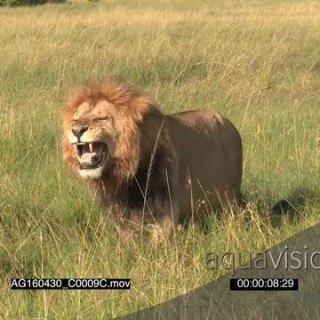 African Lion (Panthera leo) male flehming for smelling female in heat