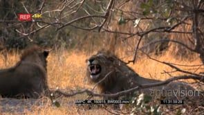 Two male African lions sitting under a tree one flehmen DRY