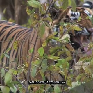 Bengal Tiger standing in a forest looking around flehmen snarl MS HAND AmCam