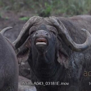 Cape Buffalo bull flehmen while the rest of the herd is mud bathing.