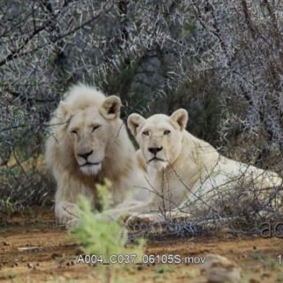 Male and female White Lion laying down, looking around and checking territory.