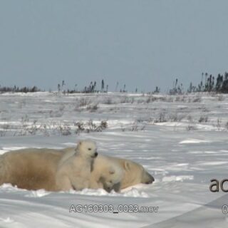 Two Polar Bear cubs trying to turn their mom so they can sulk her teats while asleep.