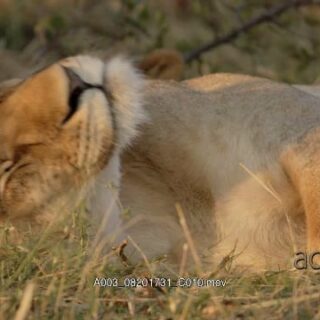 Female African Lioness laying down, resting and sleeping.