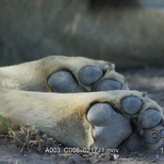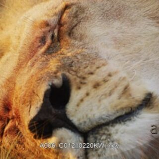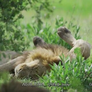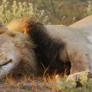 African Male Lion CU shot of its face and claw, sleeping, looking towards and around.