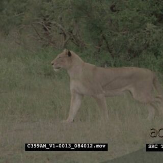 Select options DownloadTwo adult male African Lion stalking, running and interacting, MWS;PAN; LATE AFTERNOON