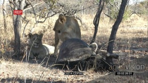 African Sub-adult lions Pulling Suffocating and killing the Wildebeest MS