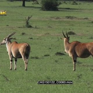 Elands standing on bushveld looking around and tail-slapping LS HAND