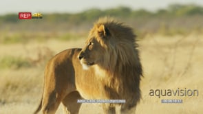 Male lion in savanna turning and look back