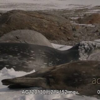 Weddell seal crawling on stomach to move on ice, turn and looking around.