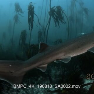 Tracking shot of a Broadnose sevengill shark, cow shark swimming towards camera turn and swims away.