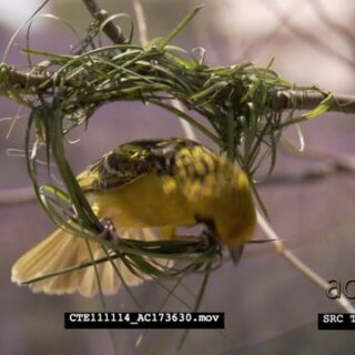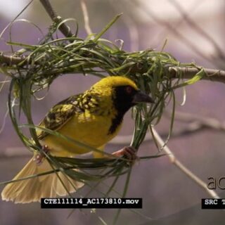 Select options DownloadSpotted-backed Weaver male building nest CU