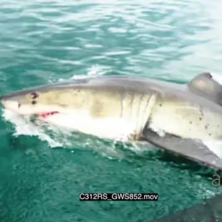 Great white shark half breach TOPSIDE GOOD LIGHT