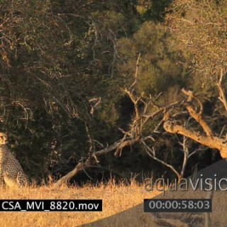 Cheetah sitting facing towards camera looking around hunting and stalking