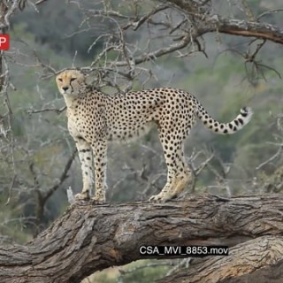 Cheetah on dead tree scouting around hunting investigating tree bark