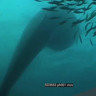 Large Bryde’s Whale going through sardine baitball feeding UW