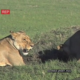 Lions digging up Warthogs from their burrow and takedown whole warthog family, Botswana