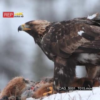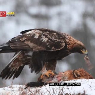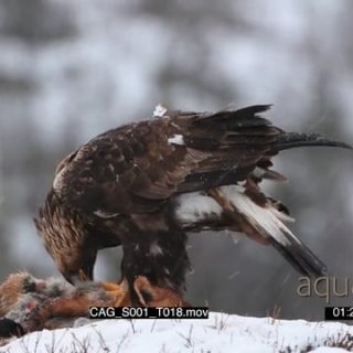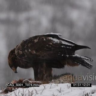 Golden eagle feeding on red fox while snowing heavily and Looking around for Predators SNOW GENERAL BEHAVIOUR