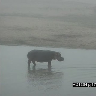 Hippos in misty rain conditions facing off intimidation behaviour dung scattering hippo pod social behaviour in river