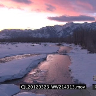 Male bighorn sheep displaying and chasing females on snow covered prairie LS PAN