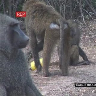 Olive Baboons with young infants, infants playing with trash AmCam