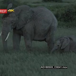 New Born African Elephant Calf wakes up and walks off with the Mother following the rest of the Herd MS PAN GENERAL BEHAVIOUR