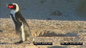 African Penguins digging burrow, building nest