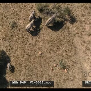 Aerial Drone African elephant herd and calves feeding off bushes