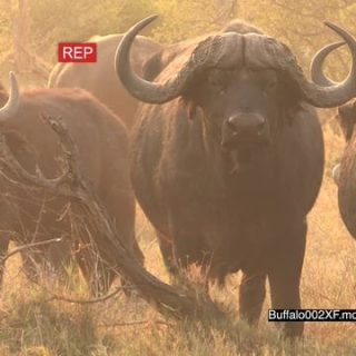 Herd of Cape buffalo standing looking around and others walking around MWS