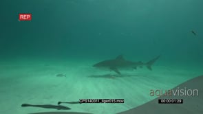 Tiger Shark swimming at the ocean bottom UW