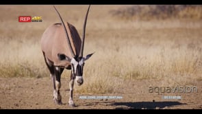 close up wide shot of an elegant Gemsbok, Oryx gazelle walking to the waterhole to drink