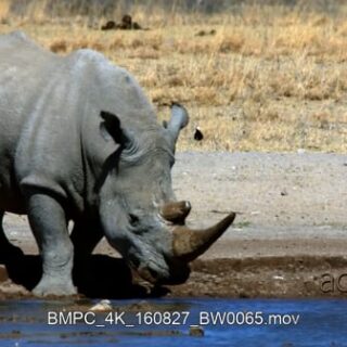White Rhinoceros standing and drinking water, midday.