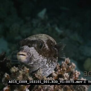 A Close Up of a Puffer Fish, Arothon sp looking directly at the camera with its beaked mouth.