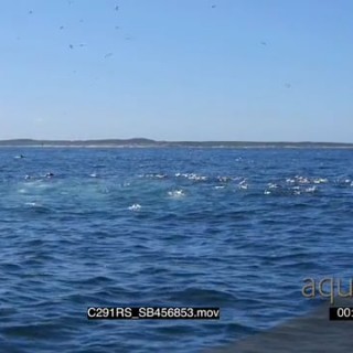A flock of cape gannets floating, diving in and fishing XWS GOOD LIGHT