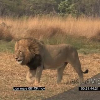 Male African Lion walking, magnificent mane MS PROFILE