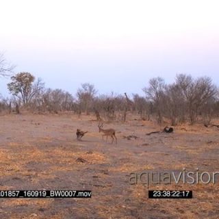 African wild dog patrolling through grass hunting GOOD LIGHT MS