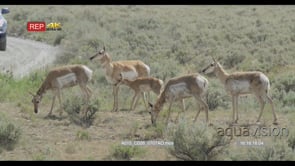 A herd of Pronghorns walking, standing and grazing WS PROFILE PAN