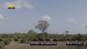 Cape Buffalo herd walking in African bushveld
