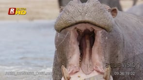 Select options DownloadDominance display of adult Hippo, showing off weaponry, intimidation behaviour and aggressive; PAN;MWS;DAY.
