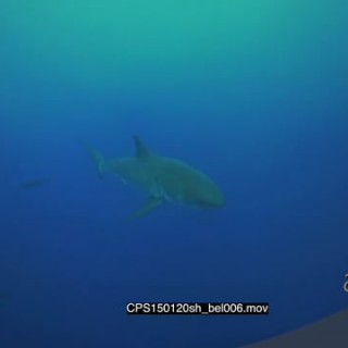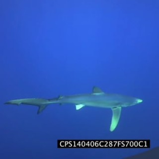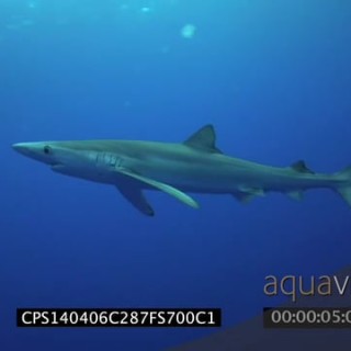 Blue Shark swimming underwater in ocean LS PAN HAND
