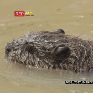 Beaver swimming and turning in river MS