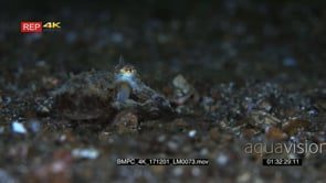 Close up of a Veined octopus or coconut octopus, Amphioctopus marginatus slides along the sea bed following small fish to eat. Note color change