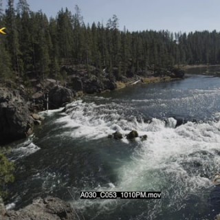 AERIAL of the Yellowstone river flowing GOOD LIGHT