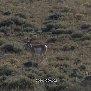 A pair of Pronghorn Antelopes standing and looking around and the other one walks off GENERAL BEHAVIOUR