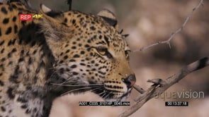Close up front view of leopard listening and watching while on the hunt