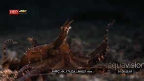 Close up side view of a Wonderspus octopus Wonderpus photogenicus and its large tentacles swirling