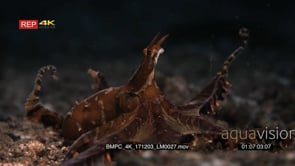 Close up tracking shot of a mimic octopus, octopus sp19, Thaumoctopus mimicus moving along the sea bed